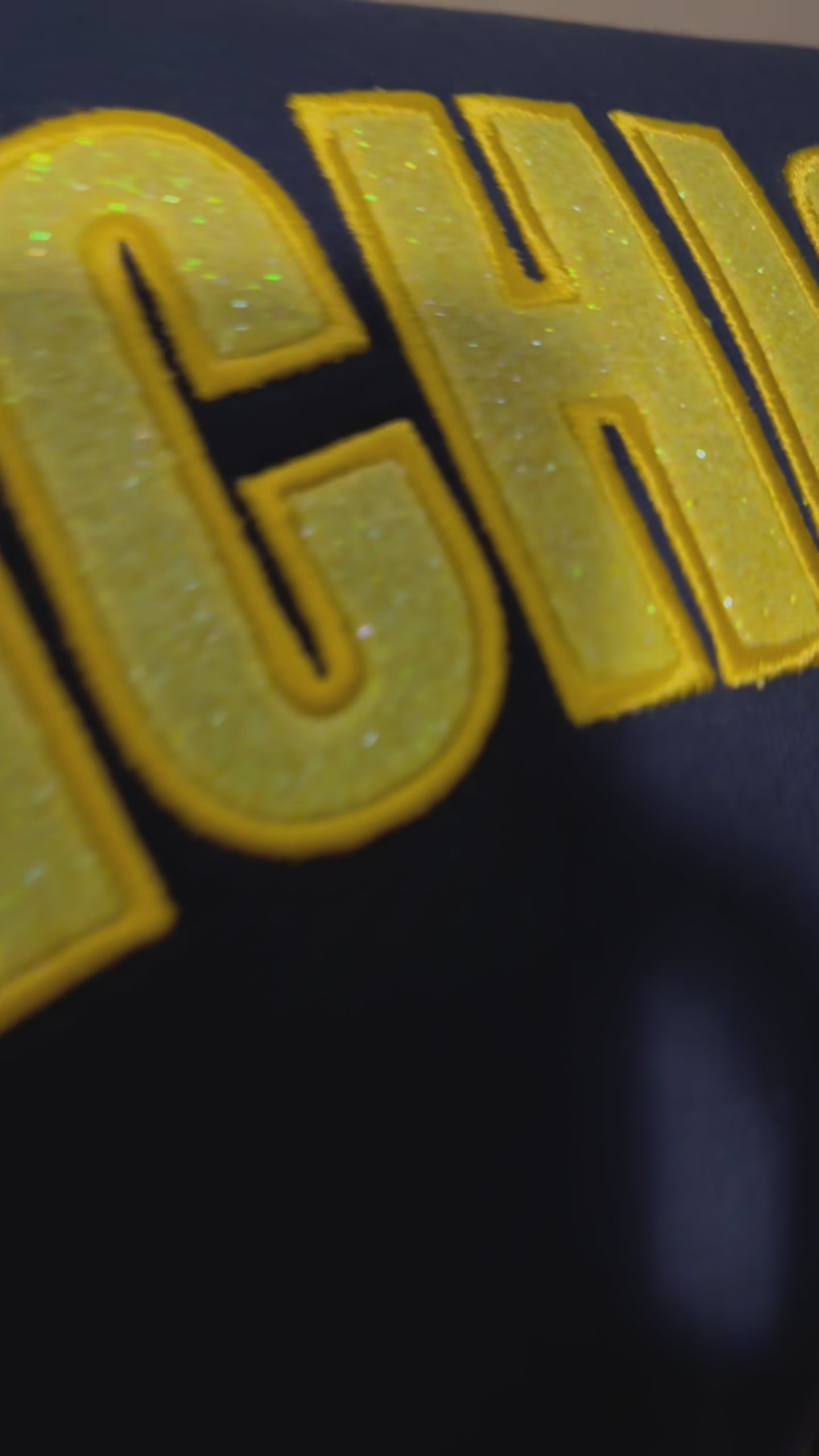 Blue Michigan with Gold Glow in the Dark Glitter Embroidered Crew Neck Sweatshirt