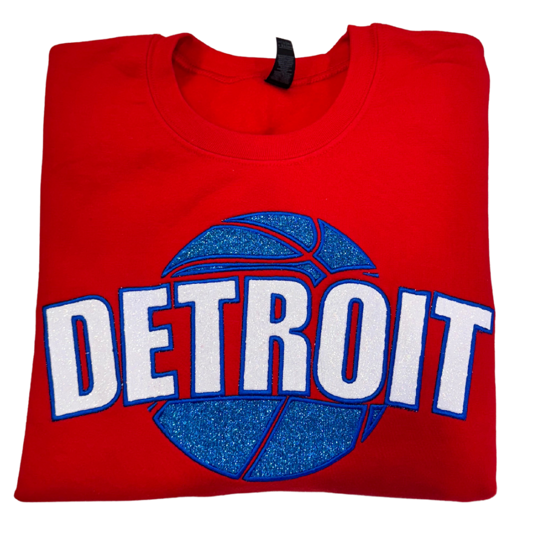 Detroit Basketball Glitter Embroidered Sweatshirt box lettering
