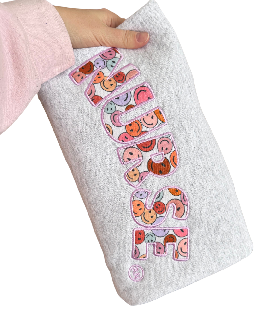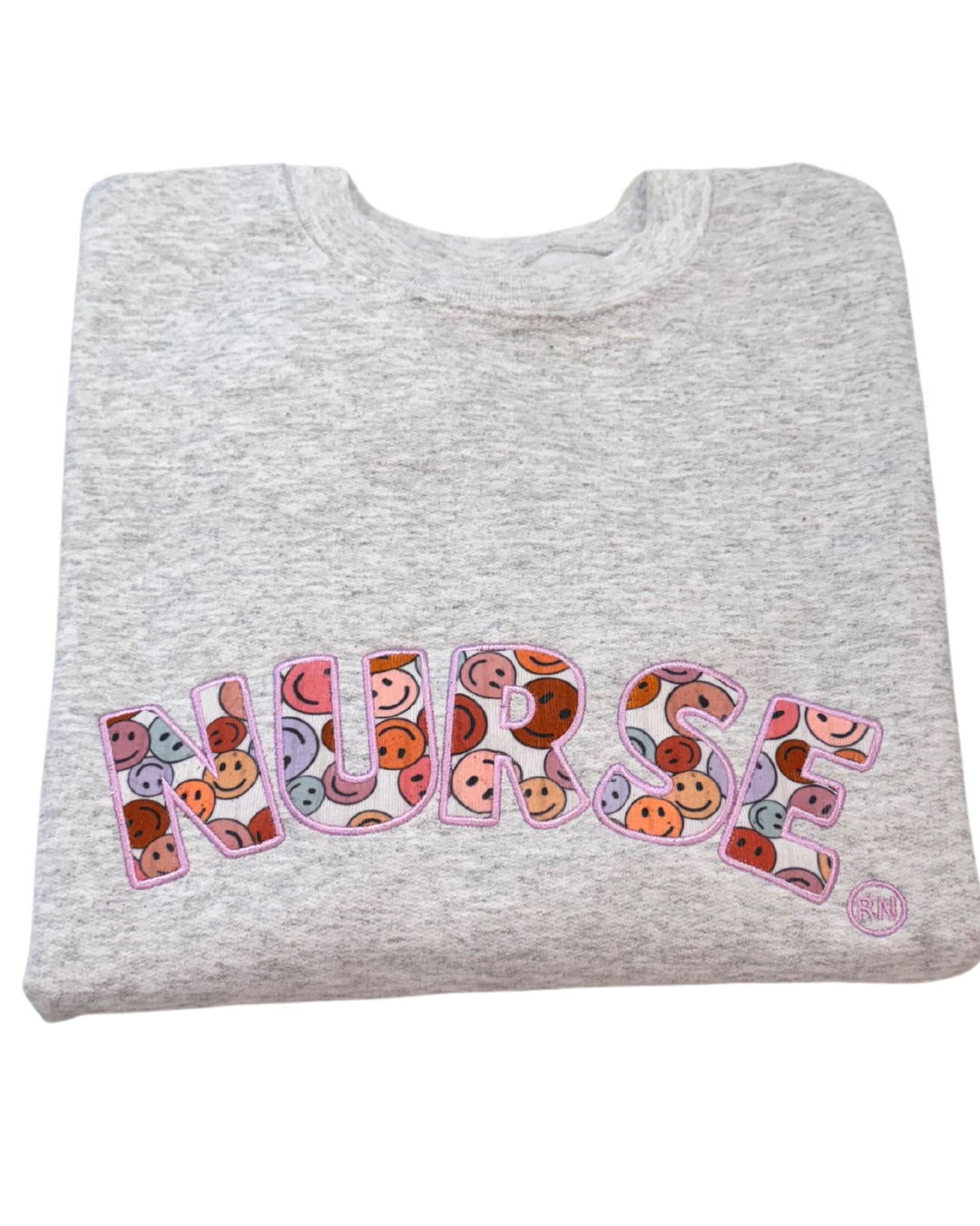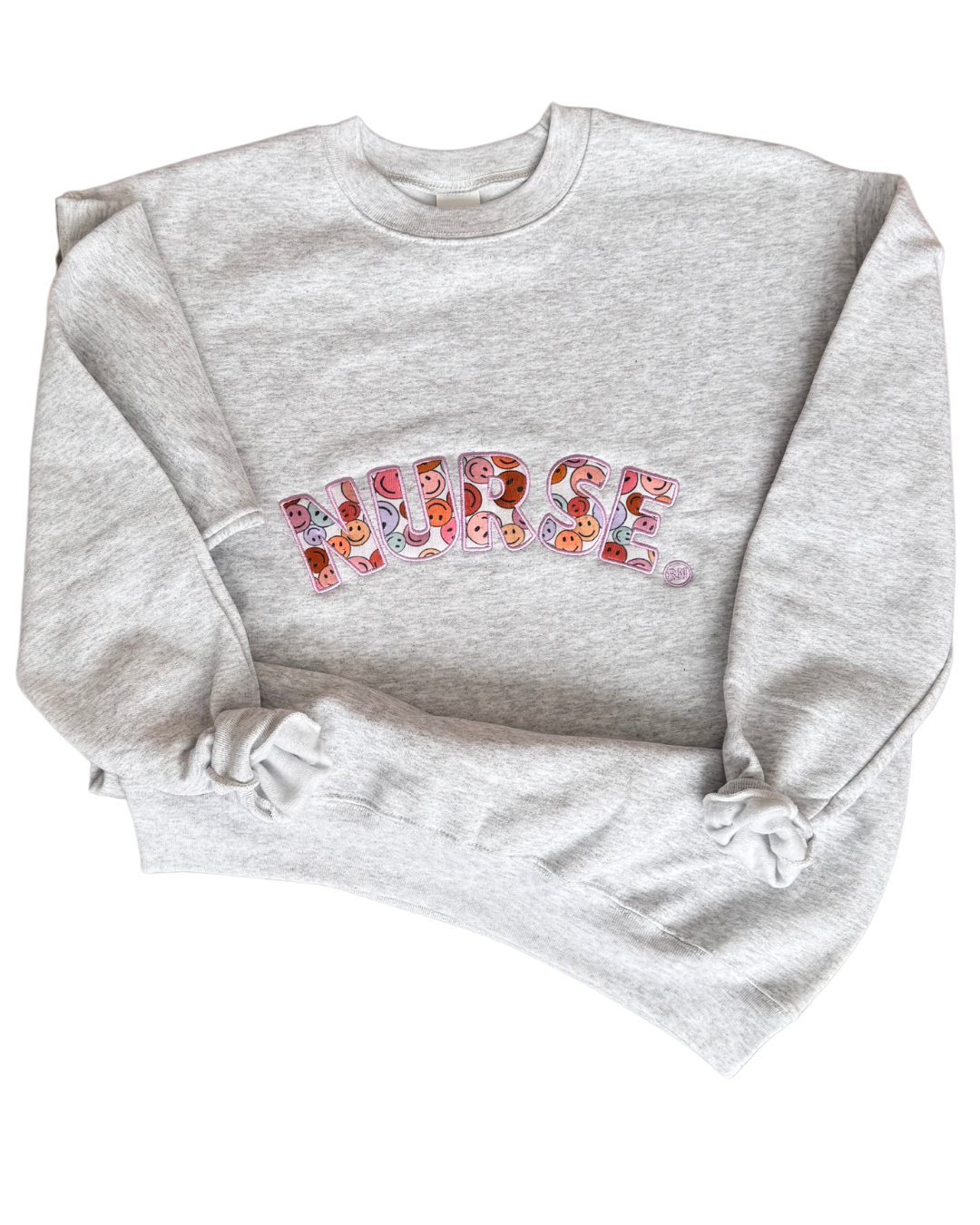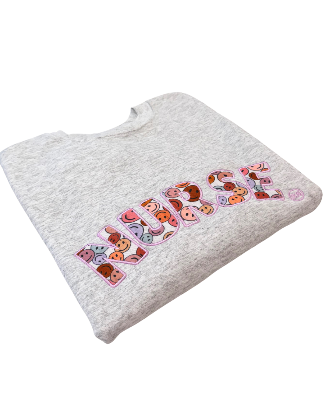 Nurse Embroidered Happy Face Crew Neck Sweatshirt
