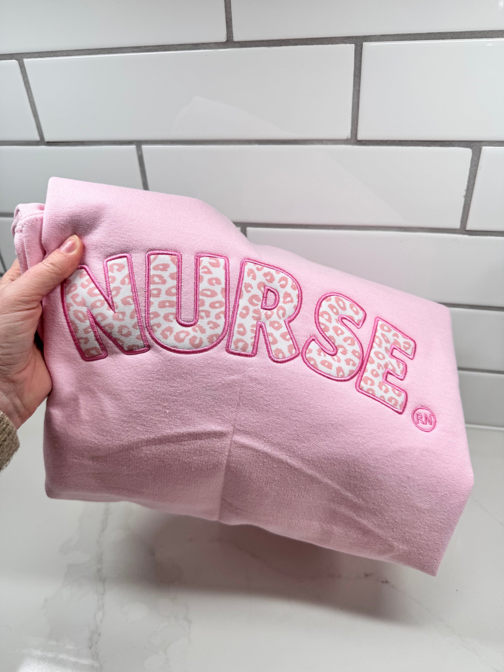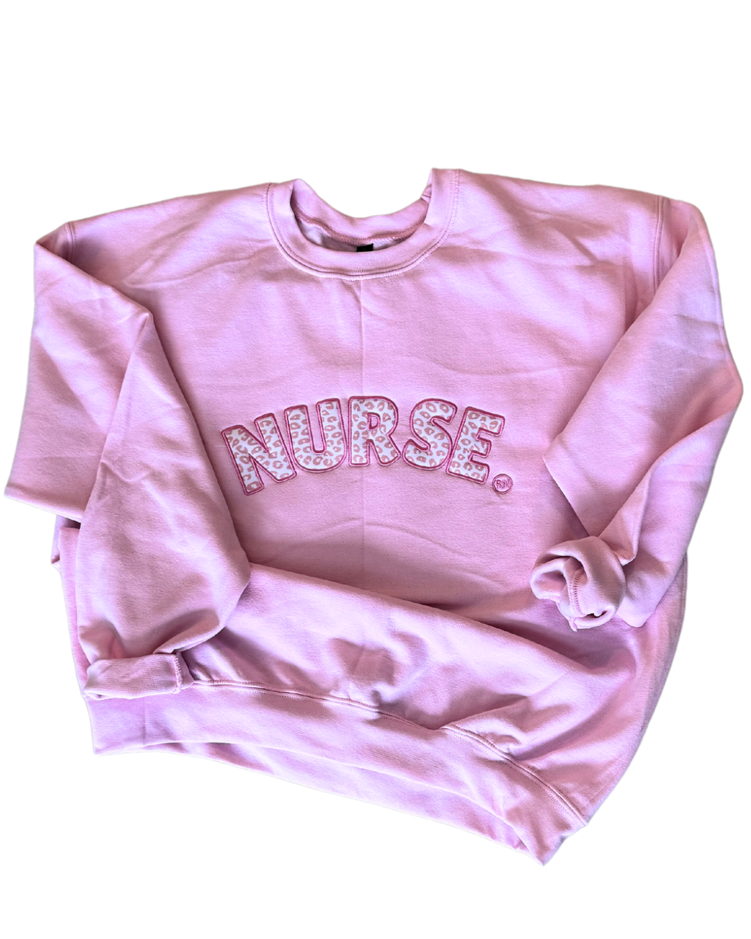Nurse Embroidered Pink Leopard Crew Neck Sweatshirt